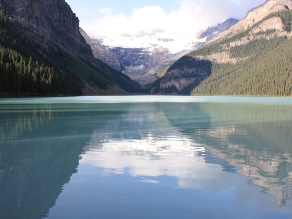数日雨が続いたため天候が不安でしたが,その日は雲一つない快晴で,湖や山の一番美しい姿を観賞することが出来ました。特にレイクルイーズとアサバスカ氷河は,まるで童話の世界に出てくるかのように透き通っていて美しく,自然の雄大さを感じ取りました。