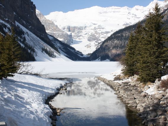 GWの頃ではまだ湖も凍っているので、真っ青なレイクルイーズの湖面とか、絵葉書のような風景を見たい方は夏を待った方がいいと思いますが、凍えずに雪景色を見られるという意味ではこの時期の良さもありました。どこに行ってもまだ観光客が少ないのでのんびりできます。