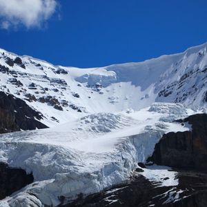 雄大な山並みと初めて見る氷河は大迫力でした。雪上車で扶養が常を移動し、氷にも触れる体験はなかなかの感動ものでした。温暖化の影響で数百年後には消滅するのではないかと言われているとの事ですが、いつまでも大切に残したいものです。