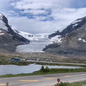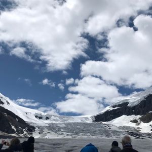 コロンビア大氷原は、雪上車に乗り換えて行きました。氷河の上を歩けて氷河の水も少し飲めて貴重な体験でした。あまり風がない日で、それほど寒くなかったです。