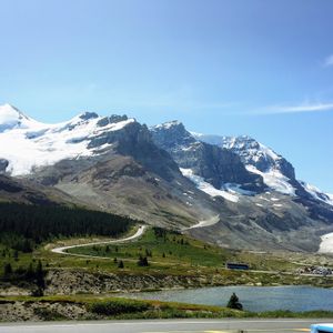 バンフからコロンビア大氷原に至るまでのドライブも素晴らしい景観が続きます。どこを切り取っても絵葉書のような景色でした。そして、雪上車に乗って氷河の上まで来れるのは世界でもここだけだそうです。二度とない体験ができました。