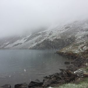 当日は8時半発のシャトルバスに乗り、レイクオハラへ。最初は曇り空ながらも美しい景色を楽しみゆっくりバイキングでしたが、レイクマッカーサーが近づくに連れ、雨は雪に変わり、積もりだしました。雷鳥親子も岩場で滑るような悪天候の中、私と友人、そしてご夫婦の、いかにも登山素人4人を率いて、若き平林ガイドは、正直、本当にお困りだったと思います。けれど冷静にルートを選び、早めに切り上げてしまうこともなく、我々の希望を受けて、夕方のシャトルバスの時間いっぱいまで、山を満喫させて下さいました。
