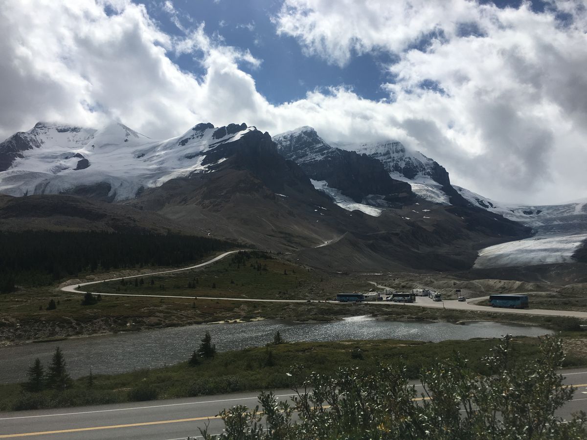 というのも、初めてのバンフということもあり、ゆっくり個人でレンタカーでまわるのも面白いかなと考えていたのですが、実際は個人駐車場は激混みで、ツアーの駐車場がかろうじて入れるくらいでした。また現地のローカルルールとか全然知らなかったので、ガイドさんの話は大変勉強になり、楽しい時間をすごせました。何より車からみる景色がすばらしく、自分達で運転していたら運転手はここまでじっくり景色をみることはできなかったとおもいます。氷原は激さむでしたので、荷物にならなければ、夏でも持ち運び可能なダウンをお持ちすることをおすすめします。寒さに強いかたは、5枚くらい重ね着すれば氷原におりるのは20分〜30分くらいなので耐えられるかもしれませんが。私は寒くて15分くらいでバスに戻りました。。。360度が素晴らしいところでした。今度は冬にでもおじゃまさせていただきます☆