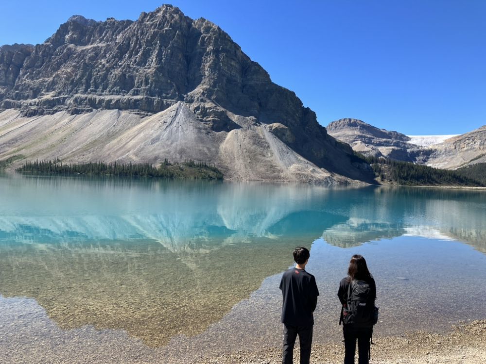 天候に恵まれ、湖はどこも美しさは想像以上、その神秘的な景色に感動の連続でした。圧倒的なスケールのコロンビア大氷原で溶けた水を飲んだこと、伝説の若返りを期待しています。山も川も心残る風景でした。安全運転とわかりやすいガイド、そして楽しいランチタイム、皆さんに心より御礼申し上げます。