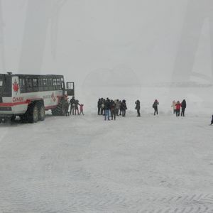 コロンビア大氷河は雪上車に乗り換え、厚さ300mの氷の上に行きます。