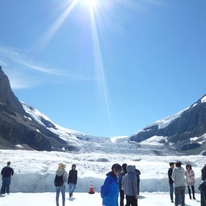 参加したときは残念ながら雨・雪の天候でカナディアンロッキーを見ることは帆トン出来なかったのですが、コロンビア大氷原ツアーでは氷河の上をあることができ、とても貴重な体験をすることができました。