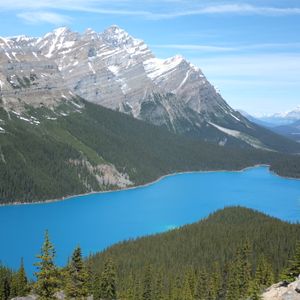 ペイトー湖では、一般の展望台で眺めを楽しんだ後、10分ほどのハイキングで別の見晴の良い岩場に案内頂き、さらに別の角度でのペイトー湖の景色を楽しむことができました。