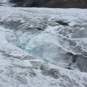 また、コロンビア大氷原は30年前に訪問したことがありますが、昔に比べると山肌が多く現れて、氷河が後退していました。しかし、この影響で解けた氷河が川のように流れていて、冷たい水を肌で感じることができました。