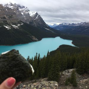 ペイトー湖は昼食が設定されており、展望台に上がって上からみることができました。知る人ぞ知るの場所のようで観光客が私たちだけでした。そしてペイトー湖の青さをみながら食べるおにぎりは最高です!