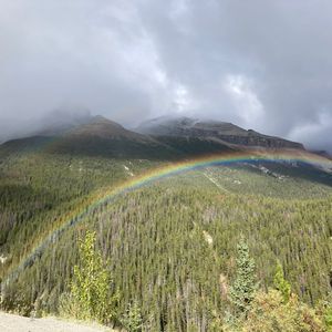 モレインレイク、レイク・ルイーズ、コロンビア大氷原、この3つが含まれているツアーを探していました。湖は5ヶ所回り、生憎の天気でしたが青々した水色は健在で、本当に美しい景色でした。コロンビア大氷原では天気が回復し、自然の壮大さに圧倒されました。ちなみに溶けた氷河の水を飲むこともできました。9月中旬に行きましたが、氷河付近は冷え込むのでダウンコートとマフラーを着て行きました。帰り際には山に大きな虹が掛かっており、最高の締めくくりとなりました。アテンドの舞希さんもとても良い方で、移動中にバンフのお土産やおすすめレストラン等を紹介してくれたり(オススメされたアルバータ牛のハンバーガーを夕食に食べに行きました!)写真を撮ってくれたりサポートしていただきました。朝の集合はちょっと早いですが、個人では行きずらい観光地を一日で巡れるので、効率よく回りたい方におすすめです。観光時間もちょうど良いと思います。ランチのサンドイッチは美味しいですが量は凄い多いわけでないので、お菓子など持参してもいいと思います。バンフの自然を堪能できました!本当にありがとうございました!