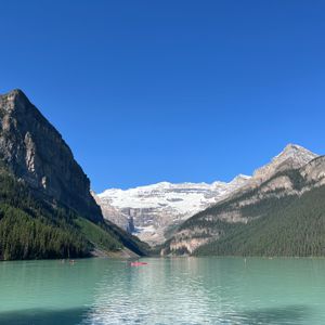 最初はレイクルイーズで2時間のフリータイム。荘厳な湖でめちゃくちゃきれいでした。カヌーは30分で155ドル、1時間で165ドルと高めですが、是非乗ってください!