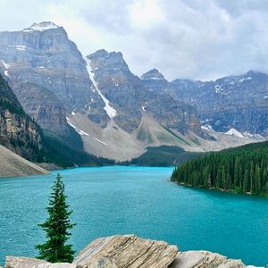 モレーン湖は、10分程岩山の遊歩道を登って行くとあのよく見る写真の景色を見ることができます。曇り空でしたが、テンピークスとのコンビネーションが本当に綺麗、壮観でした!