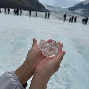 コロンビア大氷原で雪上車に乗って、氷河の上に降り立った時は感動しました。氷河は光が当たると青くて綺麗でした。