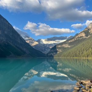 レイクルイーズでは天候に恵まれたお陰で、湖とそれに映る山々がとても綺麗でした!モレーンレイクもレイクルイーズとは違う湖の色で、こちらも大感動!!コロンビア大氷原の雪上車のデカさにビックリ!!