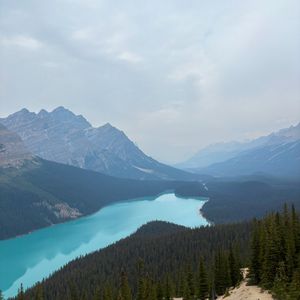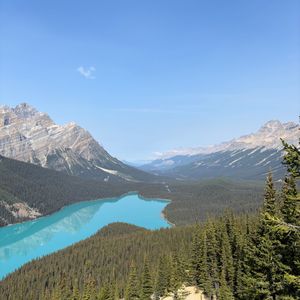 (コンディションとしては、モレーン湖は朝の風がない時間帯を逃して風が出できて湖面が波立っていました/ペイトー湖は日が傾き影になってしまった、といった状態)