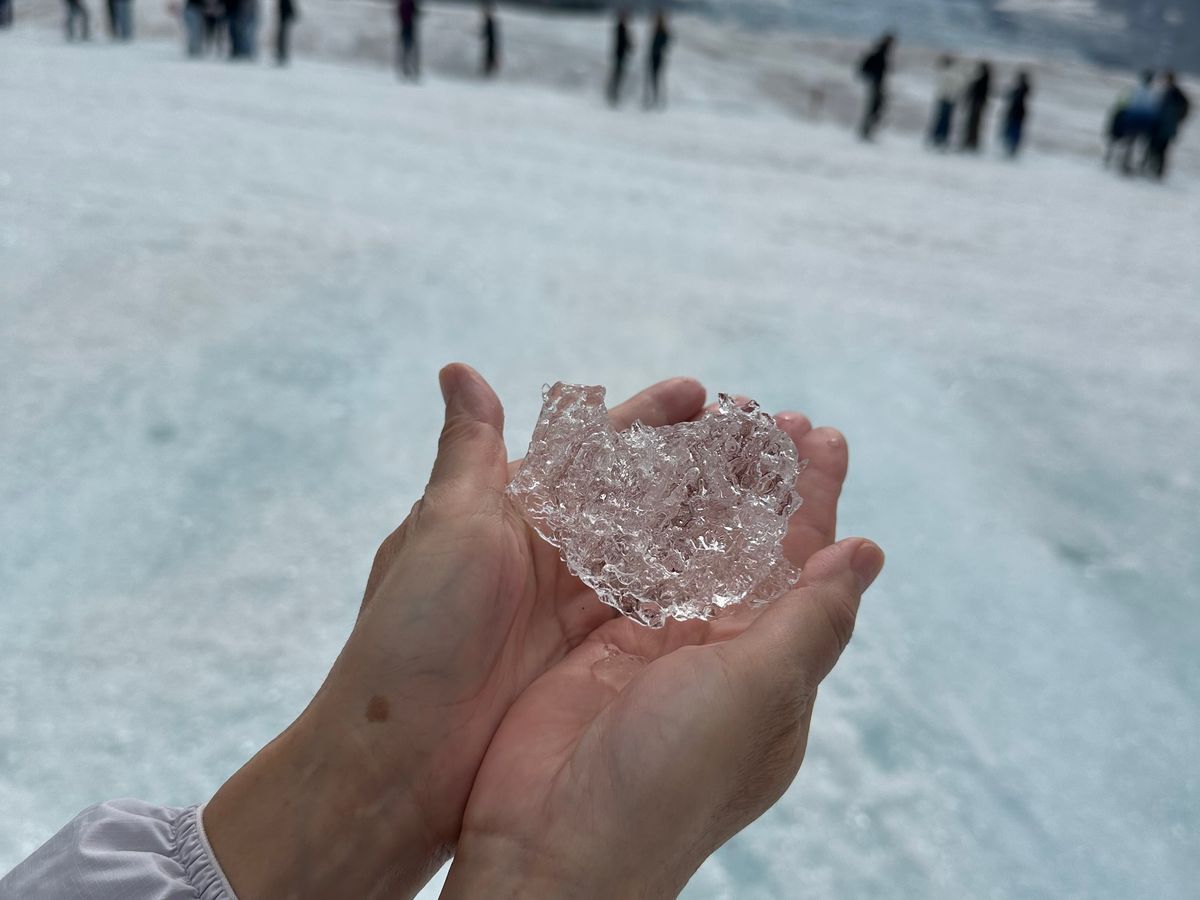 コロンビア大氷原で雪上車に乗って、氷河の上に降り立った時は感動しました。氷河は光が当たると青くて綺麗でした。