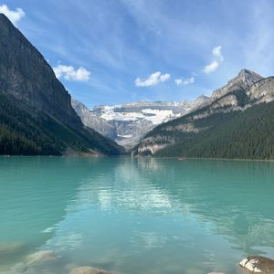 天気も良く、レイクルイーズ、エメラルドレイクはとても美しく、聳える山々も清々しく、来て良かったと思いました。モレーン湖の青さには思わず声が出てしまうくらい綺麗で驚きました。全てが壮大で、リゾートは可愛らしかった。