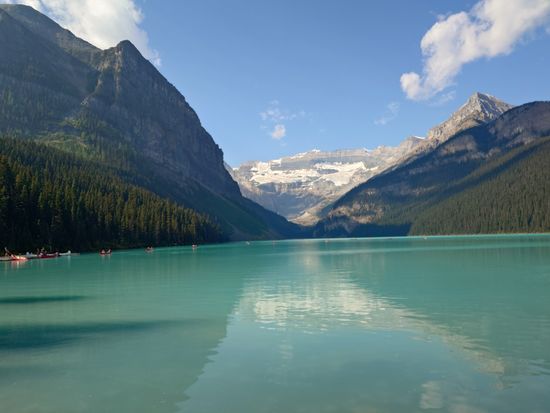 天気も良く、レイクルイーズ、エメラルドレイクはとても美しく、聳える山々も清々しく、来て良かったと思いました。モレーン湖の青さには思わず声が出てしまうくらい綺麗で驚きました。全てが壮大で、リゾートは可愛らしかった。