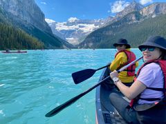 世界遺産カナディアンロッキー 絶景ピクニックランチとカヌー体験・ルイーズ&モレーン湖&コロンビア大氷原2日間+空港送迎<5~10月/日本語/1名催行可> |