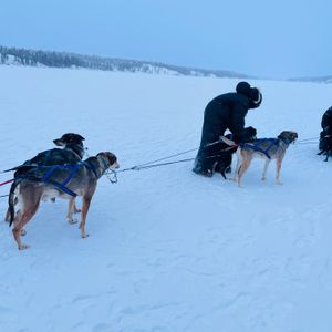 犬ゾリは初体験で面白く、訓練された犬達にも感心し、可愛いかったのですが、自分達が乗るソリが来るまでかなりの時間外で待たされとても寒かった。当初スタッフさんが2人乗りのグループを先に乗せようとしたのでスタンバイをしていたところ、現場の他のスタッフに急に3人乗りから、と言われ、ソリが湖を周って戻るまで30分以上は小雪も舞う寒さの中立ったまま待たされました。最初に乗ったグループは終了後にバスに乗せてもらい先に帰ったようで、寒さの中待たされることもなかったようですが、今回のように申し込み者の数に対してソリの数が限られる場合はその場で適当に決めるのではなく、迎えのバスの中でオペレーションをもっと綿密に考えてもらいたかった。迎えのスタッフと現場のスタッフとの事前の打ち合わせを徹底してもらいたい。