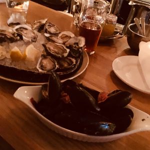 お腹が空いていたので、一軒目は地元産のオイスターが食べられるイエールタウンのお店に連れて行って頂きました。旨味がたっぷり詰まったオイスター3種類とムール貝を堪能!