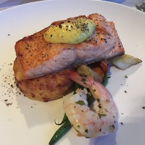 グランビルアイランドのレストランに行き、サーモンのグリルをメインとしたお料理をいただきました!一緒に出てきたお野菜や海老もとても美味でした