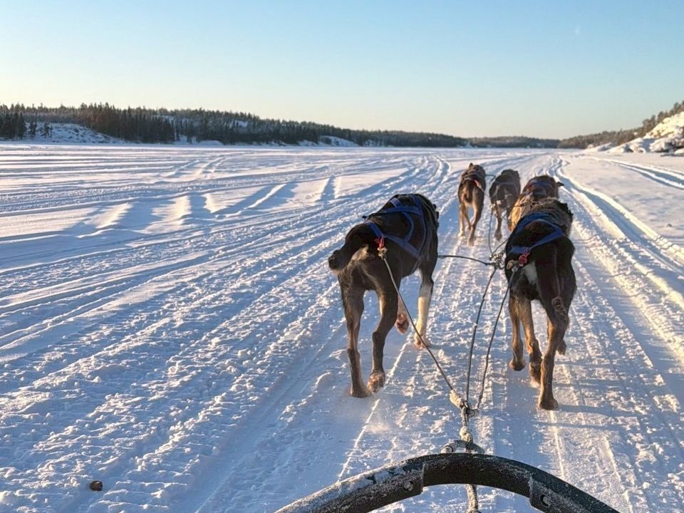 午後の犬ぞりが不催行の影響で、アイスフィッシングの食事を摂る時間を遅らせることで、午前最後の犬ぞりに参加させてもらいました。