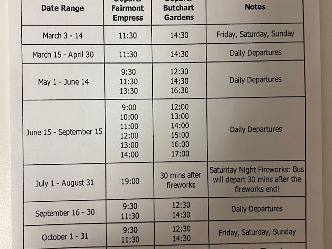 ビクトリアとブッチャートガーデンでは十分な自由時間がありゆっくりと観光が出来ました、往復の船も大型でしたのでほとんど揺れなかったです、船の中ではビッフェや軽食を買えることが出来ましたので朝早い出発でも大丈夫でした。ガイドさんにバンクーバーのお薦めの飲食店を教えてもらうことが出来て親切に対応していただきました。