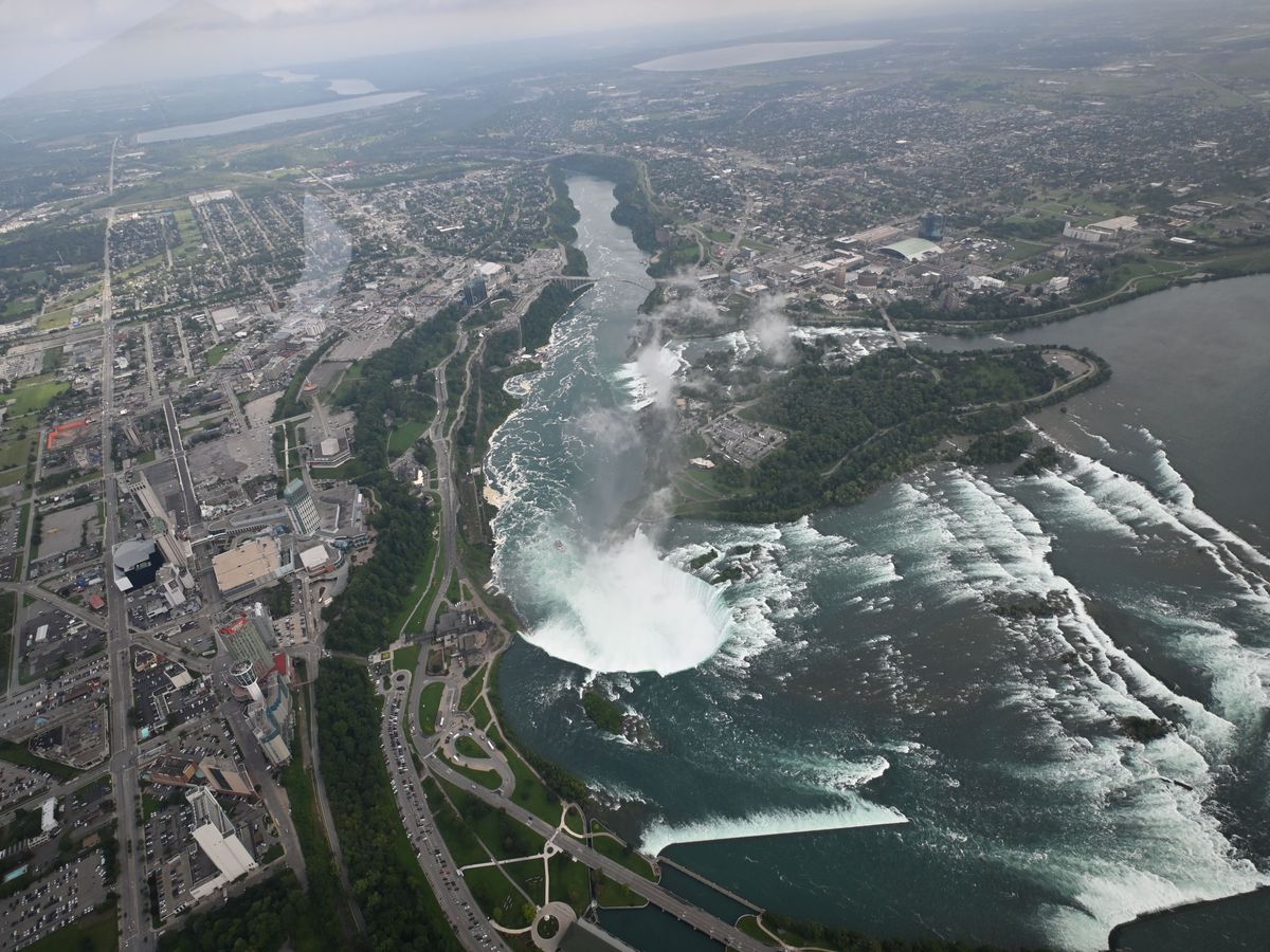 肝心のツアーは、ヘリに乗るか乗らないか迷うなら乗った方が良い。とにかく雄大なナイアガラの滝を上空から見られる。こんな体験は生涯に何度もないし、夕方の時間帯を選べば陽射しも弱まっているので気にならない。