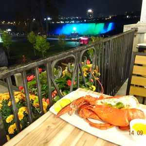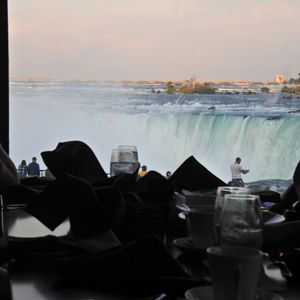 食事については、Table Rock Welcome Center (カナダ滝の傍の専用観光センターのような施設)の上の階でとりました。天気がよければ、夕焼けからライトアップまで、食事をしながらきれいに見ることができると思います。