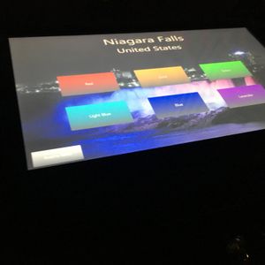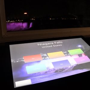 周辺のホテル滞在の人や、展望台にいる人、その他滝周辺で観光している人、滝付近のレストランで食事中の人など、滝の夜景を鑑賞している人がたくさんいる中で、アメリカ滝・カナダ滝両方のライトアップの色を変更できます。
