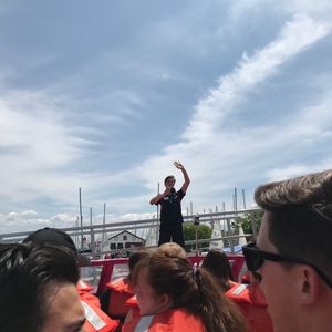 WE GOで、ナイアガラオンザレイクまで、乗り継ぐ、予定だったため、13時で予約をして、一時間ほど、可愛い街並みを散策しながら、現地の事務所に入りました。アイパッドで、予約確認をします。定刻になると、30人くらいで、英語で、諸注意をうけてから、ボートに乗り込むますが、風が気持ちよく、上流にむかいます。