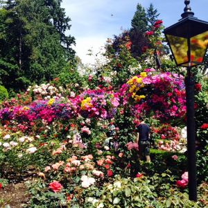 6月下旬に行ってきました。ブッチャートガーデンはポピーなどの春の花は終わっていましたが、夏の花が咲き誇っていました。特にバラ園がとっても綺麗でした。しかし、自由時間が1時間ほどしかなく、お土産屋さんまで見ることができませんでした。昼食はパン、メインの魚、コーヒーとかなり質素です。その後ダウンタウンを散策しましたが、こちらでも時間があまりなく、目当てのロジャースのチョコレート屋と紅茶屋さんのマティーズに行って終わってしまいました。駆け足で回ると結構見れると思います。往復のフェリーは中に食事ができる所やショップがあり、飽きずに乗っていられます。今度はバンクーバーからではなく、直接ビクトリアに行ってゆっくりと散策してみたいです。