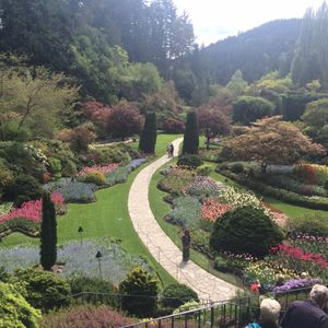 5月7日にツアー参加しました。快晴で参加者は,関東のご夫婦と私たち2人の4人でワゴン車でガイドさんと談笑しながらドライブしました。ブッチャートガーデンはちょうど春爛漫でチューリップや桜も咲いており其れは美しい庭園でした。お昼は,高台のレストランでとり