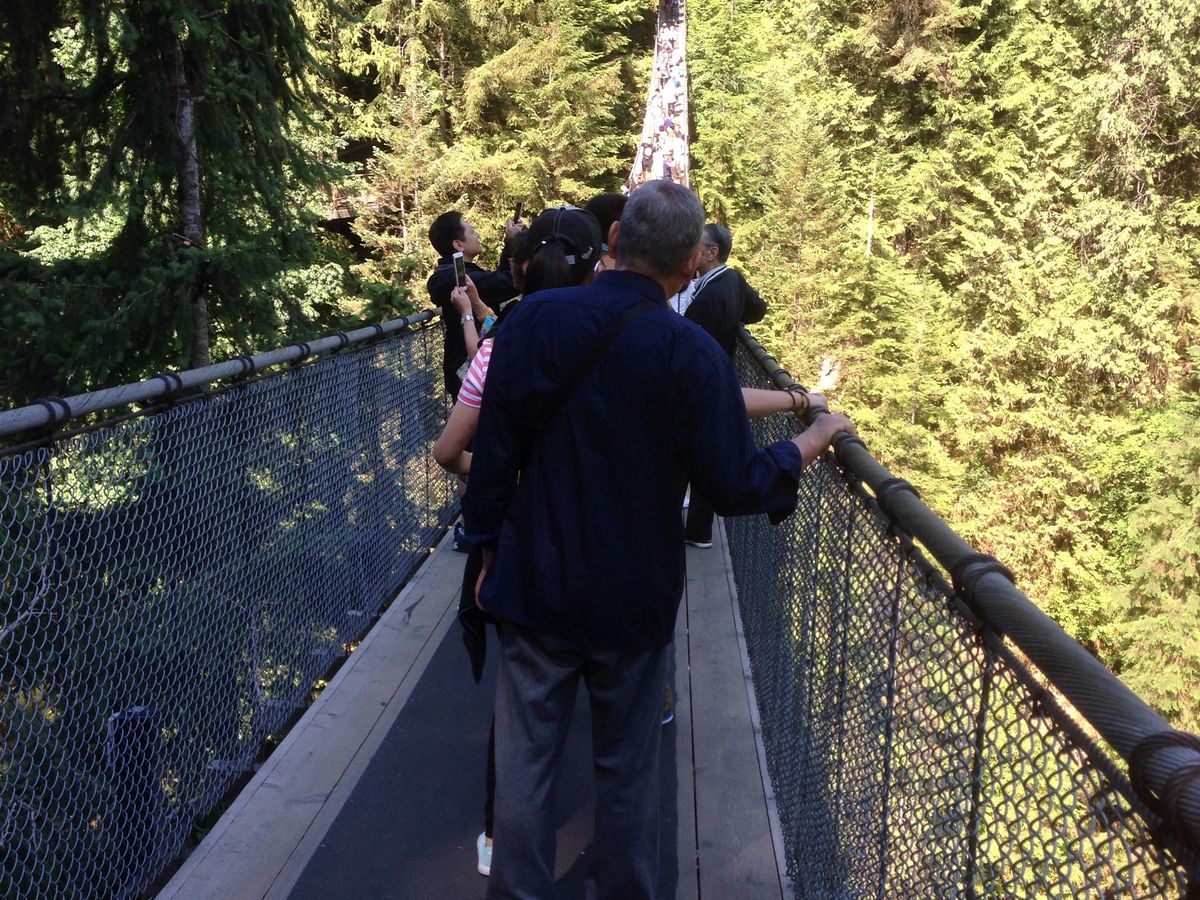 娘と参加しました。私達1組だけだったので添乗員さんに専属で案内してもらえてとっても贅沢に感じました。あいにくの霧でグラスマウンテンから景色が見え無かったこと以外は期待通りでした。グリズリーをあんなに近くから同じ目線で見れてラッキーでした。いつか雪の季節にスキーに行ってみたいです。キャピラノ吊り橋は想像以上に長くかなり揺れましたが、吊り橋の上から見たキャピラノ川やパノラマが素敵でした。吊り橋を渡りきった側にはアメリカ松にかけられた7つの吊り橋を渡るツリートップアドベンチャー思わず童心にかえりました。