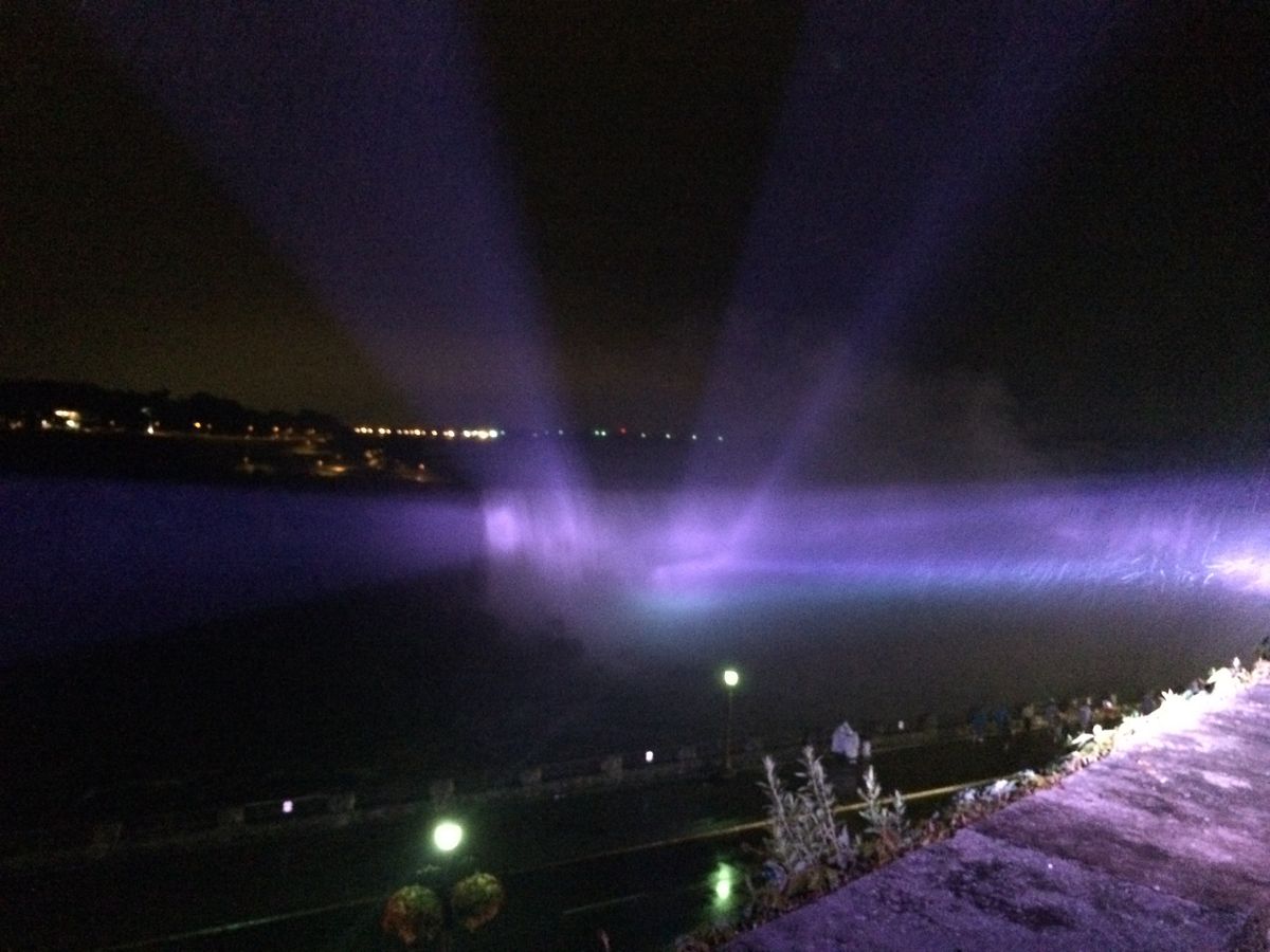 ナイアガラの滝を巨大なライトを使ってライトアップしました。