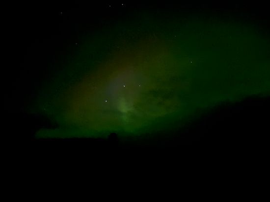 タイトルの通り、肉眼ではボッーと明るいかなと思う程度で、スマホのカメラで撮影してやっとこの程度でした。午前2時まで、マシュマロを焦がしたり、小屋でブラジルのオバチャンと日本語で話したりして楽しかったです。ガイドさんもオーロラが出ると呼びに来... 続きを読む