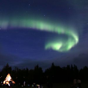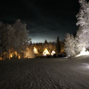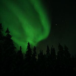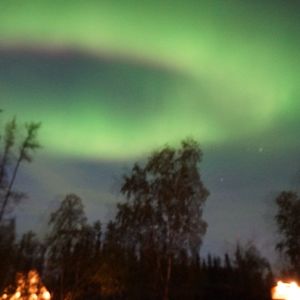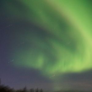 三泊滞在中、2日観ることができました。特に、最終日にはビレッジに着いたとたん、頭上に渦を巻く大きなオーロラにみなさん歓声を上げていました。カーテンのようにひらひらと揺れる様子や、緑やピンク色に変化するところも肉眼で観ることができます。刻一刻と変わる形状にただ感動するばかりでした。オーロラを探してみあげる満天の星や流れ星も楽しめます。
