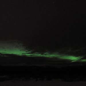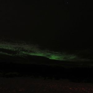なんだかんだでキャビンと外をいったりきたりして、外で待ってると隣の方がもしかしてあれ?うっすら出てる?とかいっていたので、カメラで試しにとってみると雲の後ろに実際にうっすらと緑の線が!!おぉーっとなりました。