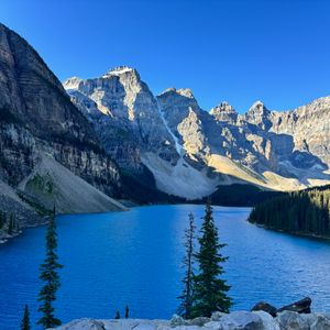(コンディションとしては、モレーン湖は朝の風がない時間帯を逃して風が出できて湖面が波立っていました/ペイトー湖は日が傾き影になってしまった、といった状態)