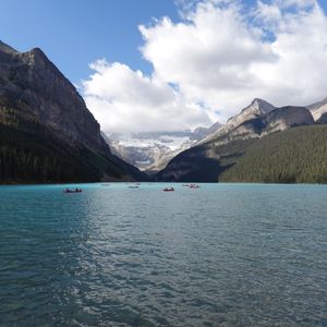 大自然のダイナミックなパノラマに感動しました!複数の湖や滝、そびえ立つ山々を実際に自分の目で見ることができて最高でした!!時間によっては、雲がかかってしまうこともありましたが、少し待てば青空が広がりとても良い景色を見ることができました!1つひとつの場所でしっかり時間を取ってくださるのもよかったです。エメラルドレイクでは、カヌー体験もできました!移動中にはガイドの方がさまざまなお話をしてくださり、ワクワクした気持ちで時間を過ごすことができました。また、いろいろな知識をつけた上で湖などを回ることができ嬉しかったです。ガイドの方はとても話しやすく、車を降りた後の移動の際にも色々お話しすることができました。こちらのツアーに参加したことが、カナダ旅行での1番の思い出になりました!
