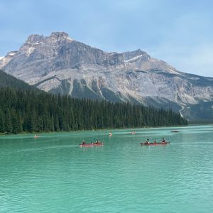 最初はレイクルイーズで2時間のフリータイム。荘厳な湖でめちゃくちゃきれいでした。カヌーは30分で155ドル、1時間で165ドルと高めですが、是非乗ってください!