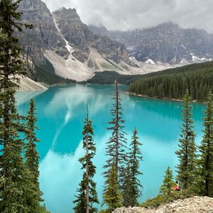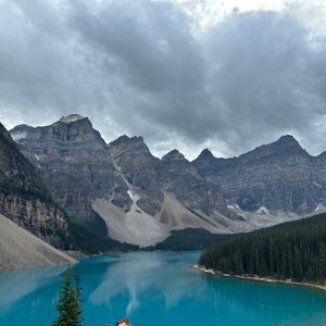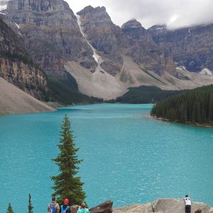 モレーン湖は、10分程岩山の遊歩道を登って行くとあのよく見る写真の景色を見ることができます。曇り空でしたが、テンピークスとのコンビネーションが本当に綺麗、壮観でした!