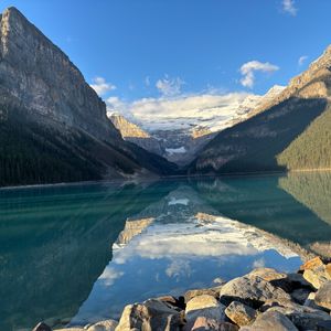 ロッキー山脈自然公園の連れ行ってくれる所とても綺麗で特に湖がコンディションがよく風がなく湖面が青くきれいに山々が反射していて最高でした。