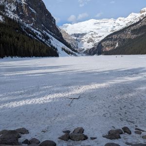 レイク・ルイーズは凍ってました!!なので、氷の上を歩くことができ、たっぷり楽しめました。駐車場も湖畔も混雑無し、この時期(5月初旬)に訪れて良かったと思いました。