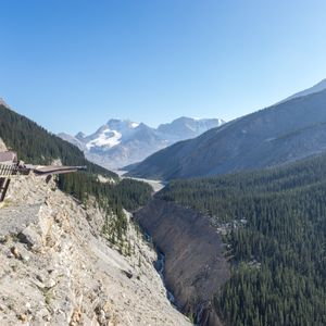 スリリングな体験ができると人気のアトラクション「グレイシャースカイウォーク」は、標高約2,000mの断崖絶壁に張り出したガラス張りの展望遊歩道。眼下には氷河によって削り取られたサンワプタバレーが広がり、まるでロッキー山脈上空を歩いているかのような感覚をお楽しみいただけます。