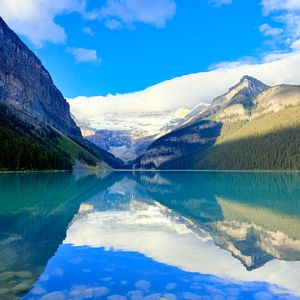 (コンディションとしては、モレーン湖は朝の風がない時間帯を逃して風が出できて湖面が波立っていました/ペイトー湖は日が傾き影になってしまった、といった状態)