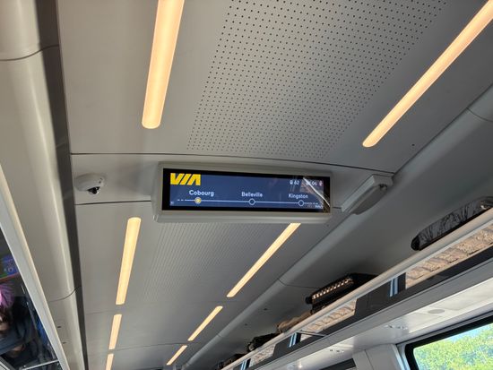 車内は清潔で綺麗ですが、座席の向きが変わらないので、トロントまでずっと反対に流れる車窓を見てました。