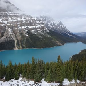 ツアー開始直後から終了まで様々な絶景を楽しむことができた。雪景色した山々の景色は美しいという言葉だけでは表現できない絶景だと思う。ただ残念なのは、参加前から分かっていたことではあるが雪解け前であるため、湖が凍結しており観光ガイドブックに載っているような風景が見られなかった。カナディアンロッキーの風景が美しいことは十分に分かったので、雪がない夏~秋の時期にまた来たい。