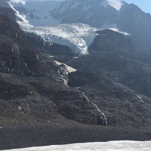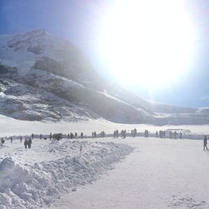 コロンビア大氷原は、雪上車に乗り換えて行きました。氷河の上を歩けて氷河の水も少し飲めて貴重な体験でした。あまり風がない日で、それほど寒くなかったです。
